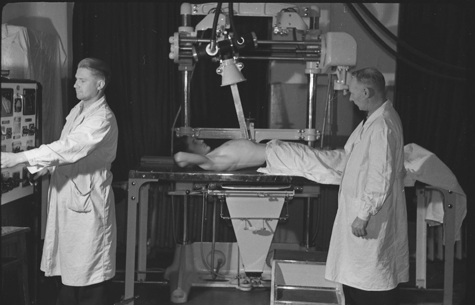 В 1961 году в больнице появились первые передвижные рентген-аппараты РУМ-4 – полевые военные завода «Мосрентген». РУМ-4 был достаточно мощным, чтобы получать на снимках трабекулы костной ткани, но невероятно громоздкий – 400 кг. Сьемка полостных органов требовала значительных выдержек, но его можно было перемещать по отделениям и проводить диагностику лежачим пациентам.