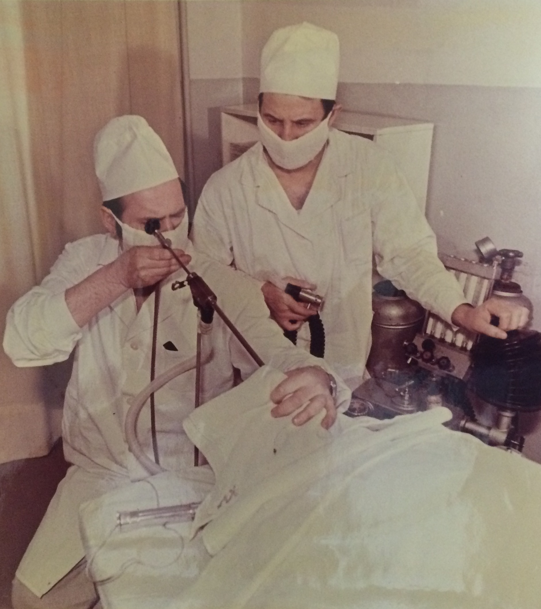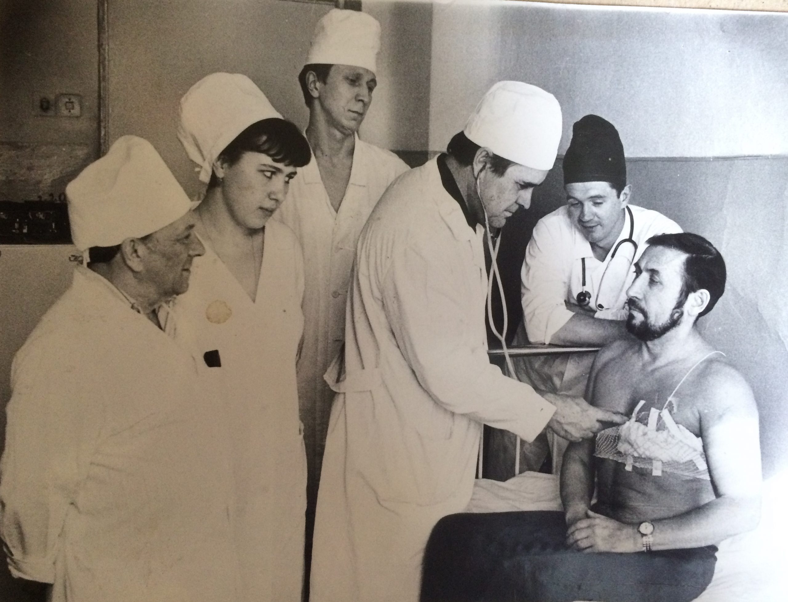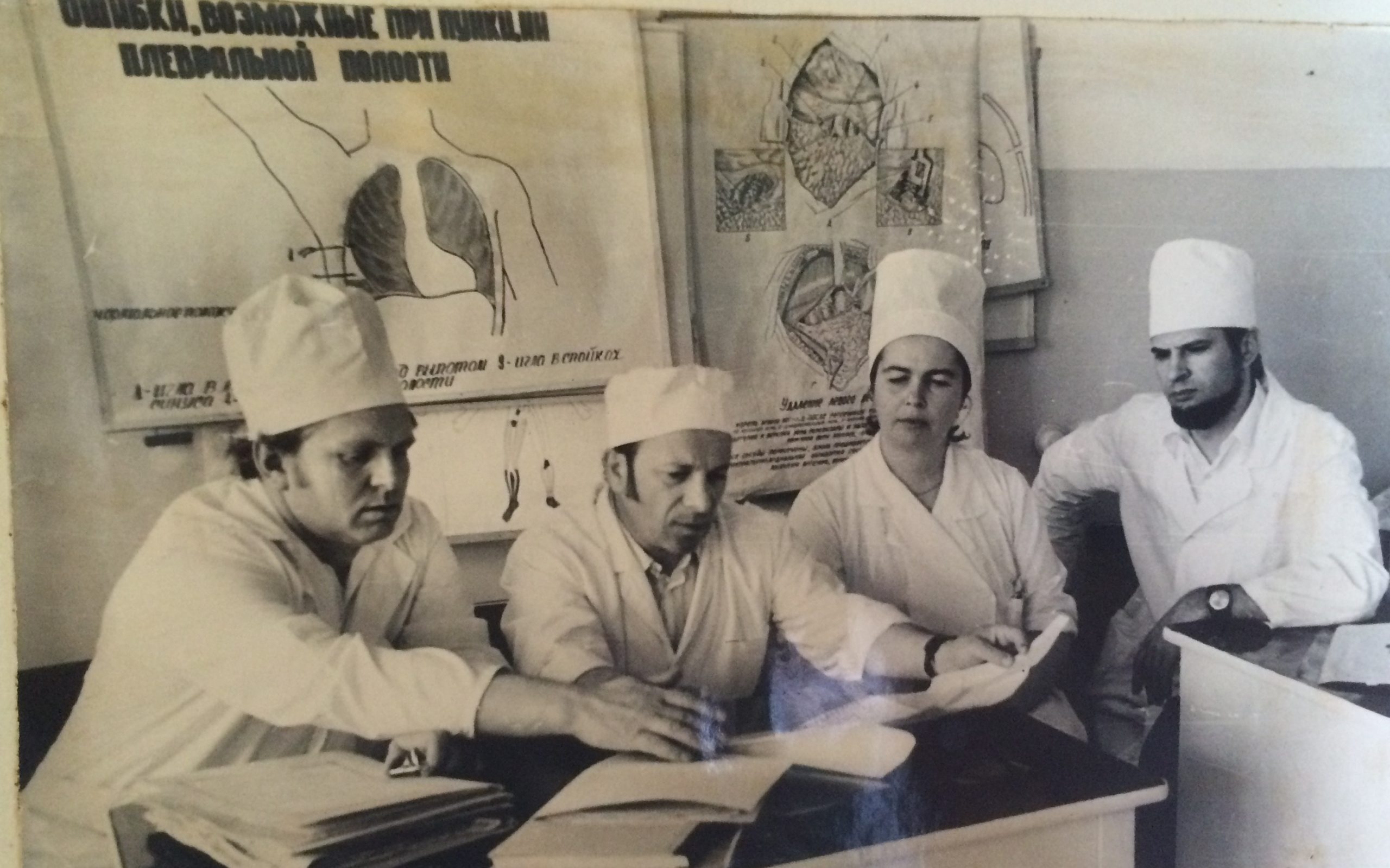 «Мы оперировали абсцессы, гангрены легких, обычно возникающие у пьющих людей, аспирировавших кислое содержимое желудка. У нас лечились пациенты с опухолями легких и средостения, ведь тогда еще не было онкодиспансера. К нам поступали больные с травмами, огнестрельными и ножевыми ранениями легких и диафрагмы. 90% пациентов требовалась немедленная помощь. В распоряжении врачей были простейшие антибиотики, но зато широко применяся метод внутриартериальной доставки антибиотиков к воспалительному очагу под рентген-контролем со стороны надежного аппарата РУМ. В сосуд вводились шведские катетеры очень хорошего качества. Даже сегодня не могу рассказать, где мы их доставали в эпоху дефицита. В отделении оперировали гнойные перикарды, лечили медиастениты, подшивали легкие, делали пластику бронхов, пищевода, удаляли вилочковую железу при миастении. Сужение пищевода происходит у суицидников, наглотавшихся уксусной эссенции. Торакальные хирурги удаляли рубцовый участок пищевода и заменяли его трубкой, выкроенной из желудка или толстой кишки. Иногда, если пищевод поврежден на всем протяжении, приходилось подтягивать желудок к ротовой полости. После операции больной глотал пищу прямо в желудок»