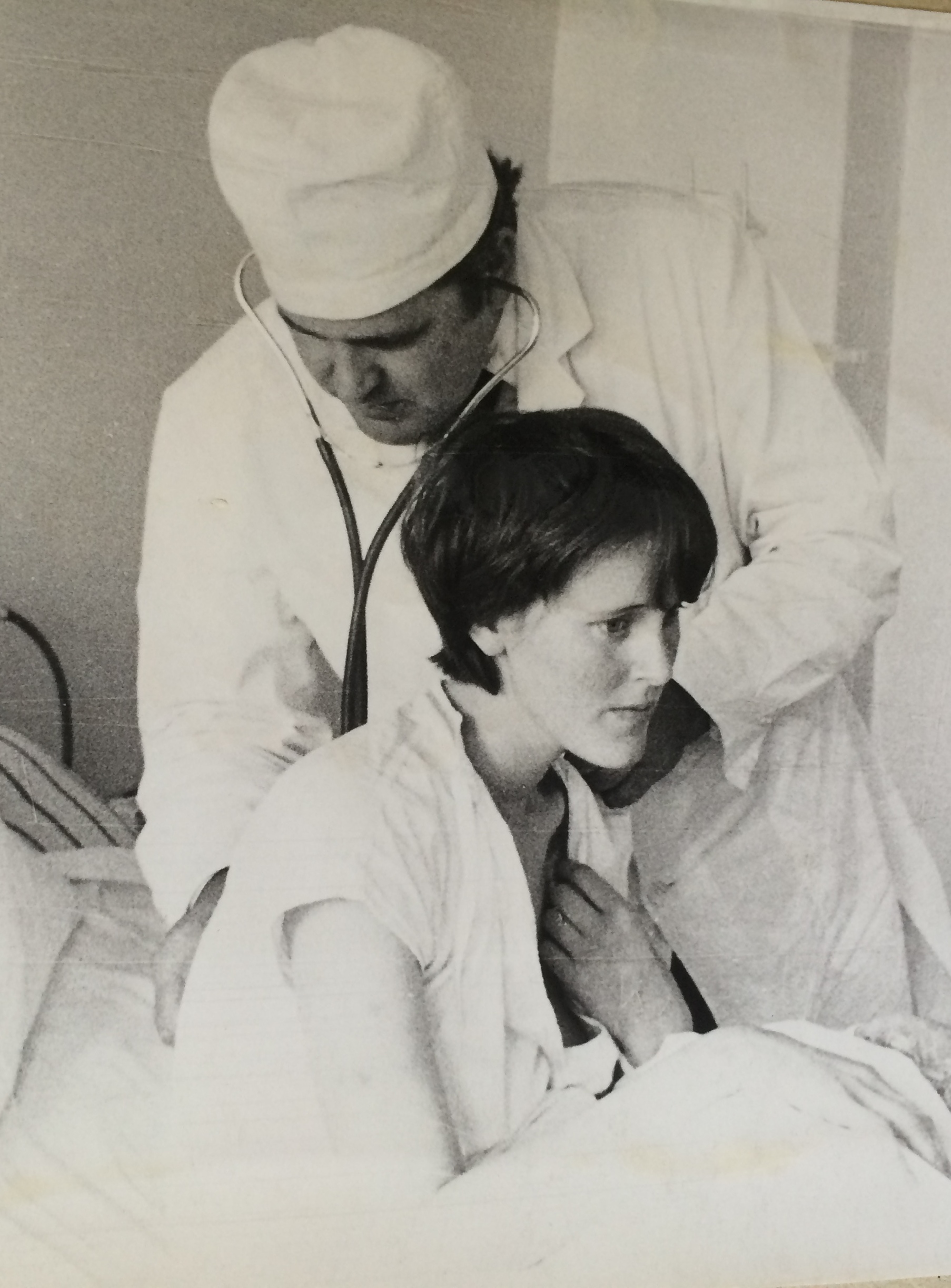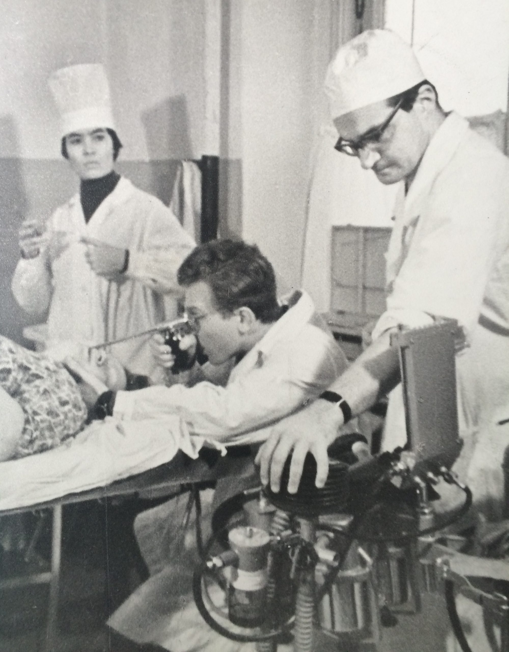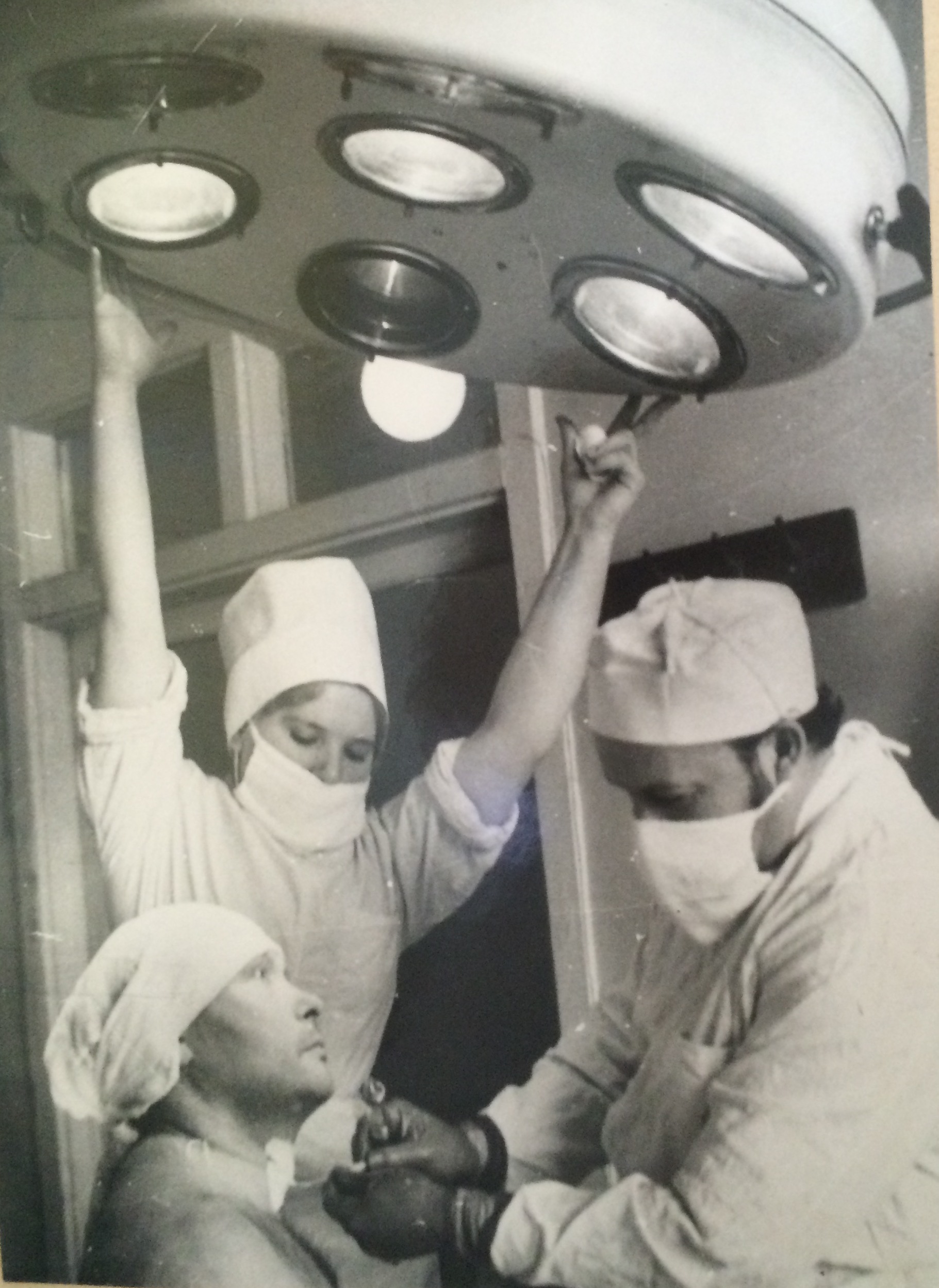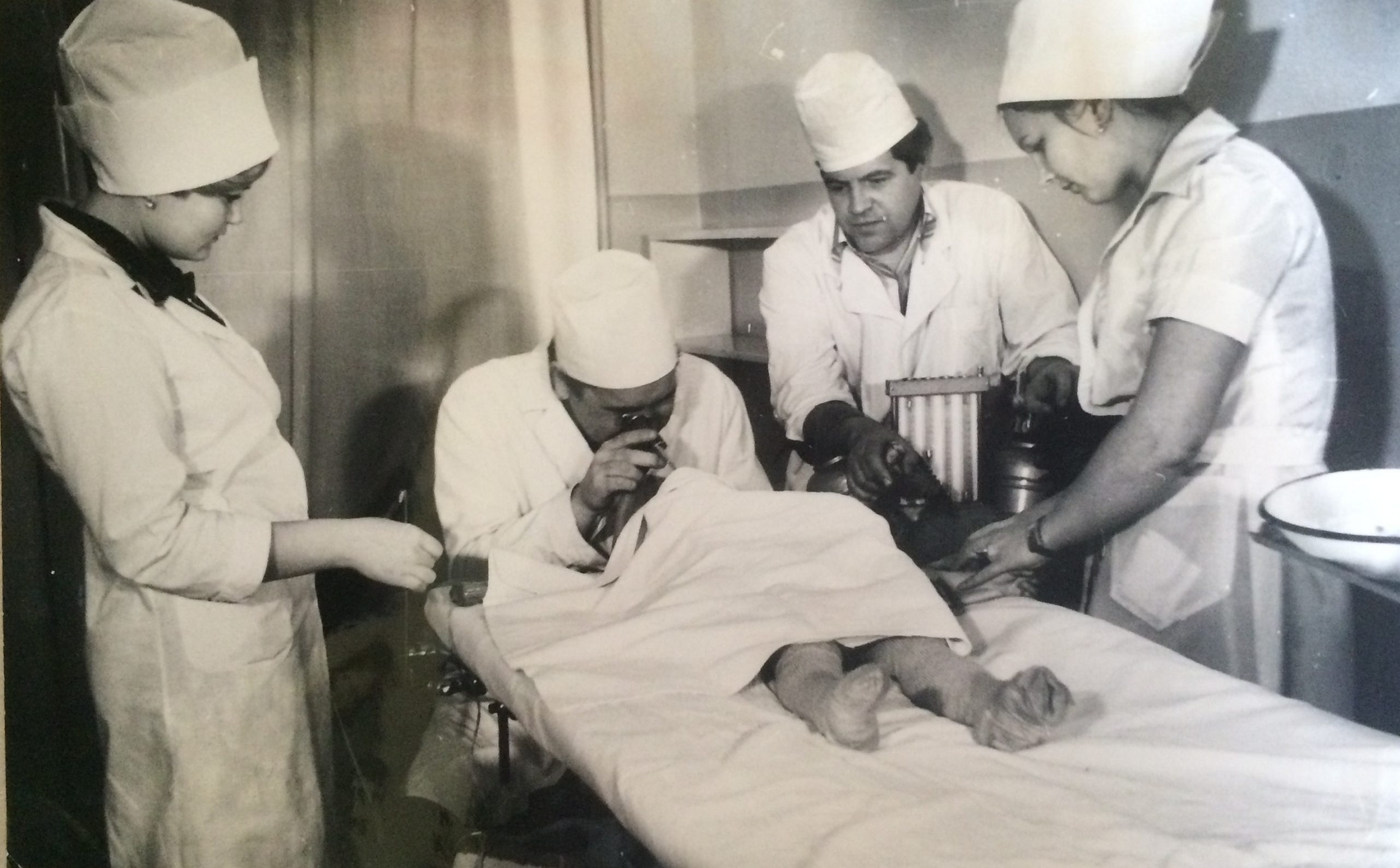 «Мы оперировали абсцессы, гангрены легких, обычно возникающие у пьющих людей, аспирировавших кислое содержимое желудка. У нас лечились пациенты с опухолями легких и средостения, ведь тогда еще не было онкодиспансера. К нам поступали больные с травмами, огнестрельными и ножевыми ранениями легких и диафрагмы. 90% пациентов требовалась немедленная помощь. В распоряжении врачей были простейшие антибиотики, но зато широко применяся метод внутриартериальной доставки антибиотиков к воспалительному очагу под рентген-контролем со стороны надежного аппарата РУМ. В сосуд вводились шведские катетеры очень хорошего качества. Даже сегодня не могу рассказать, где мы их доставали в эпоху дефицита. В отделении оперировали гнойные перикарды, лечили медиастениты, подшивали легкие, делали пластику бронхов, пищевода, удаляли вилочковую железу при миастении. Сужение пищевода происходит у суицидников, наглотавшихся уксусной эссенции. Торакальные хирурги удаляли рубцовый участок пищевода и заменяли его трубкой, выкроенной из желудка или толстой кишки. Иногда, если пищевод поврежден на всем протяжении, приходилось подтягивать желудок к ротовой полости. После операции больной глотал пищу прямо в желудок»